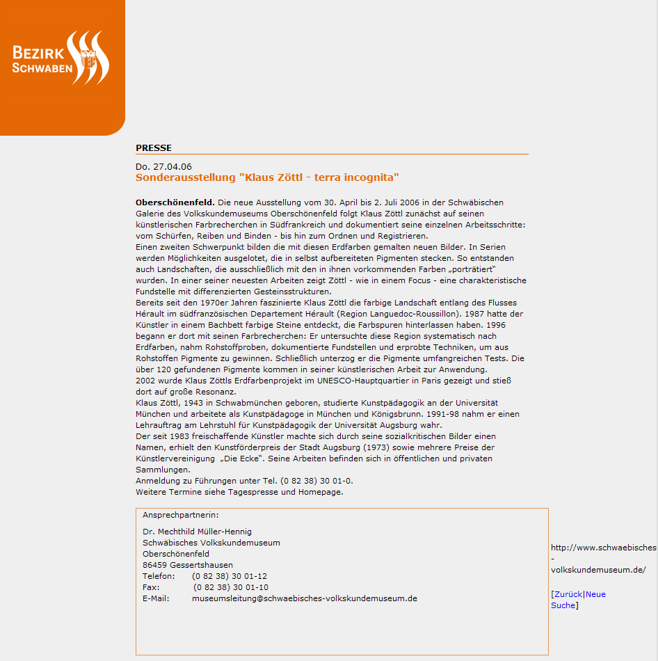 Sonderausstellung "Klaus Zöttl - terra inkognita"